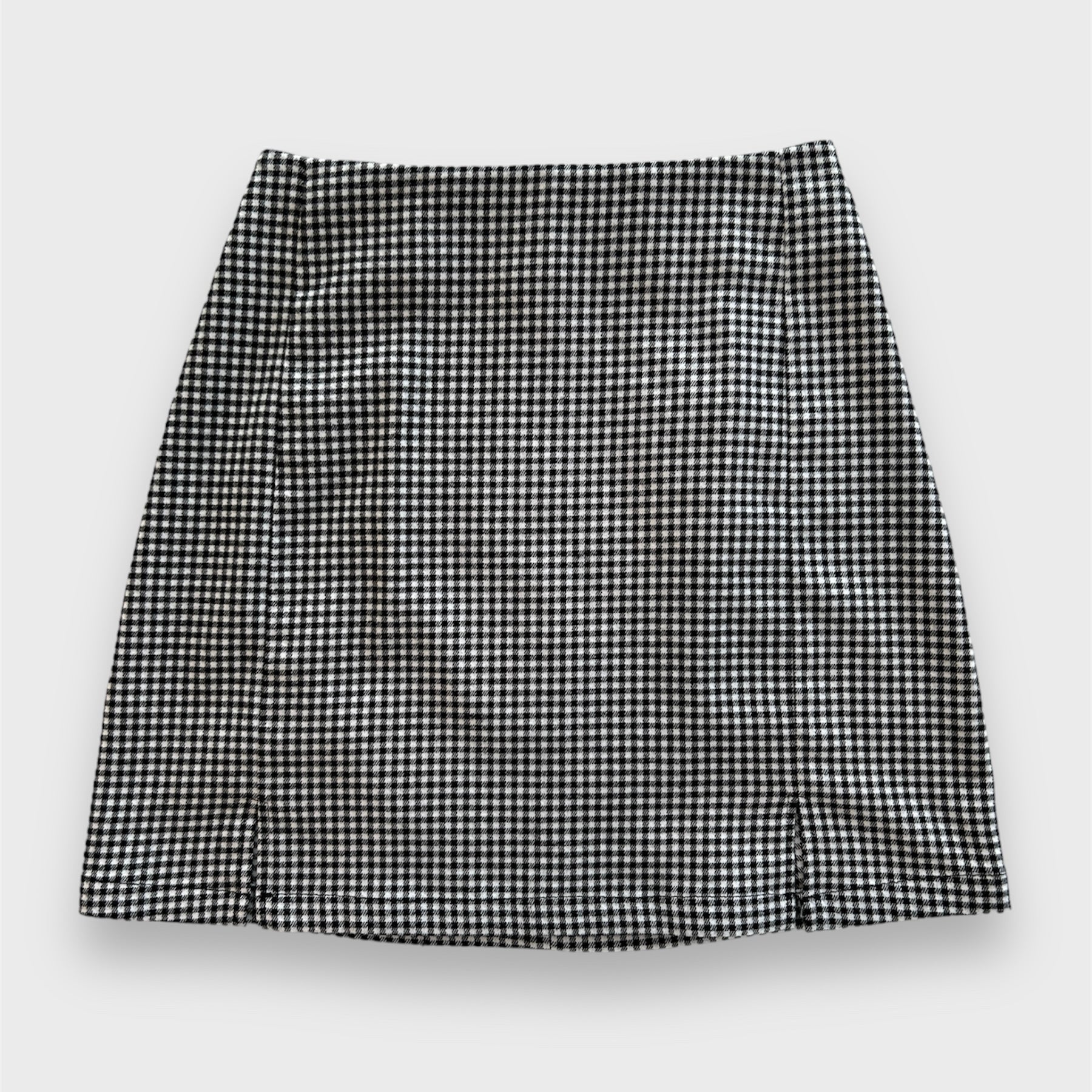 Brandy Melville Black and White Gingham Mini Slit Skirt - W24