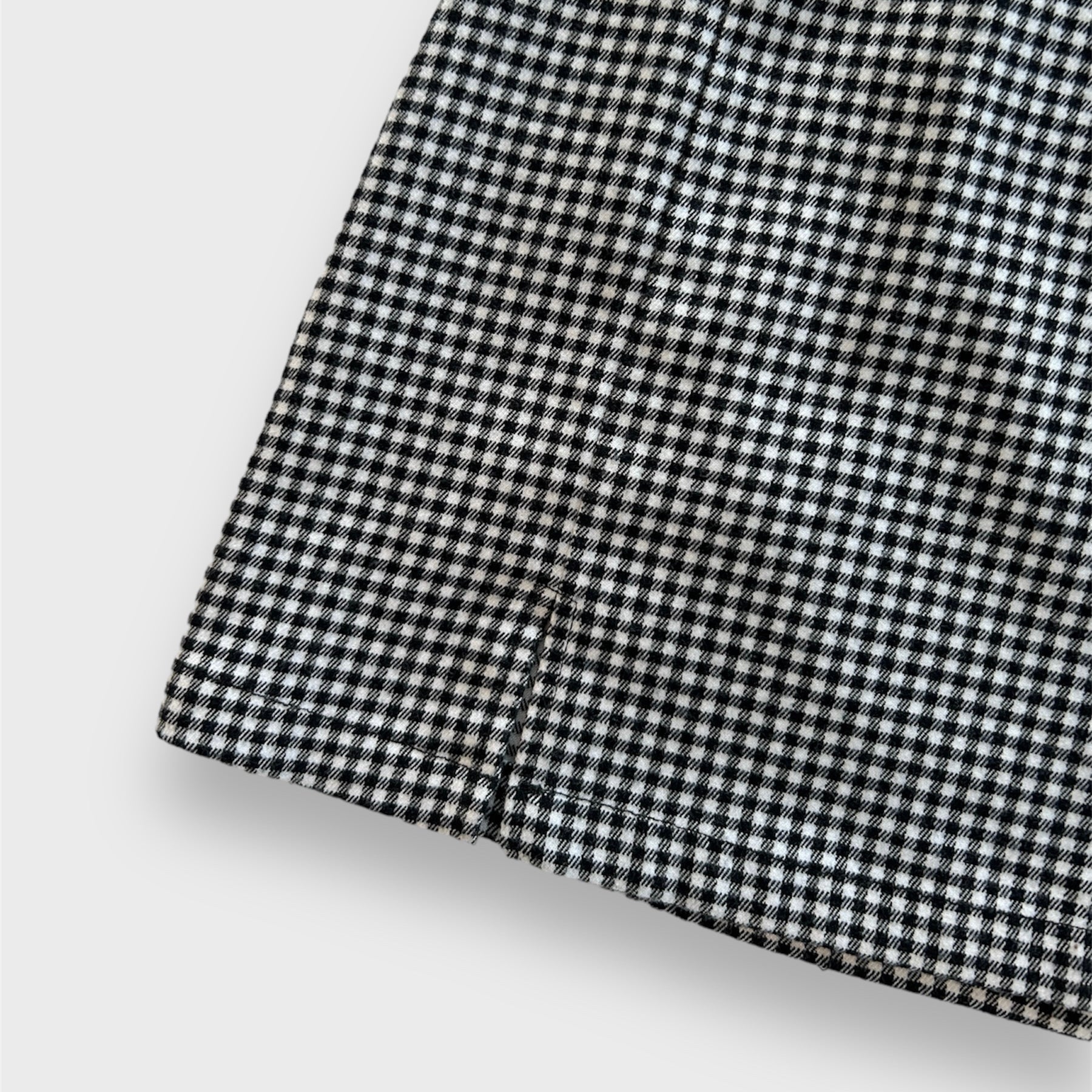 Details: Black and white gingham mini skirt; concealed back zip; two front slits; stretchy material