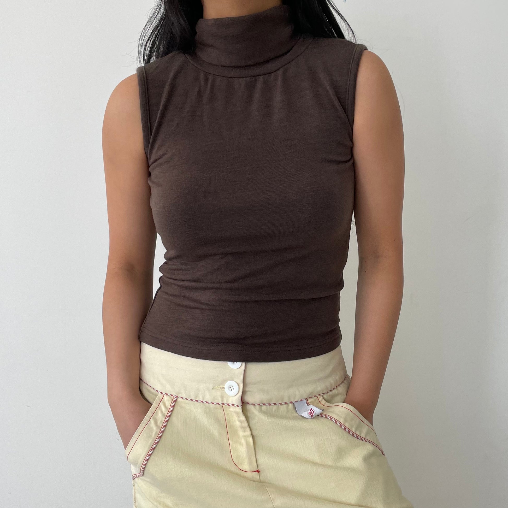 Brown Sleeveless Turtleneck Top - X-Small/Small