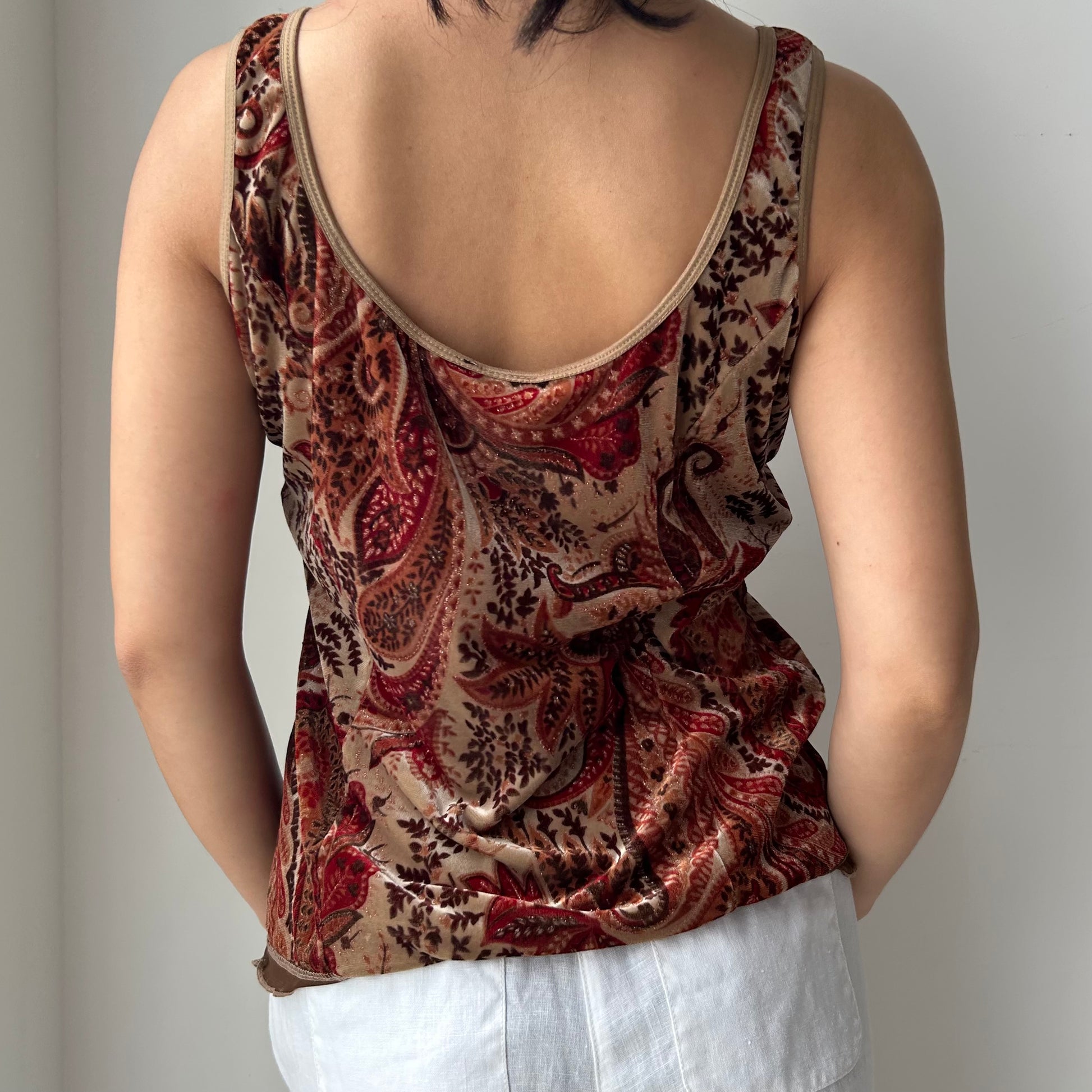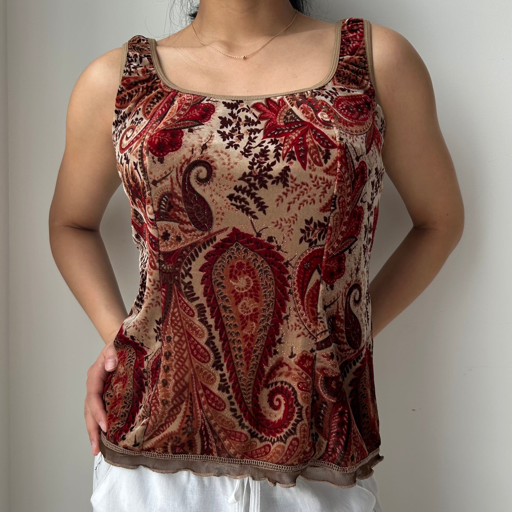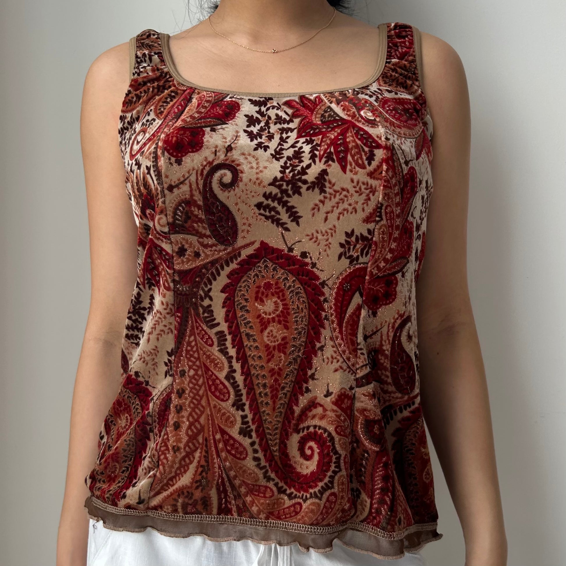 Brown Velvet Paisley Tank Top - X-Large