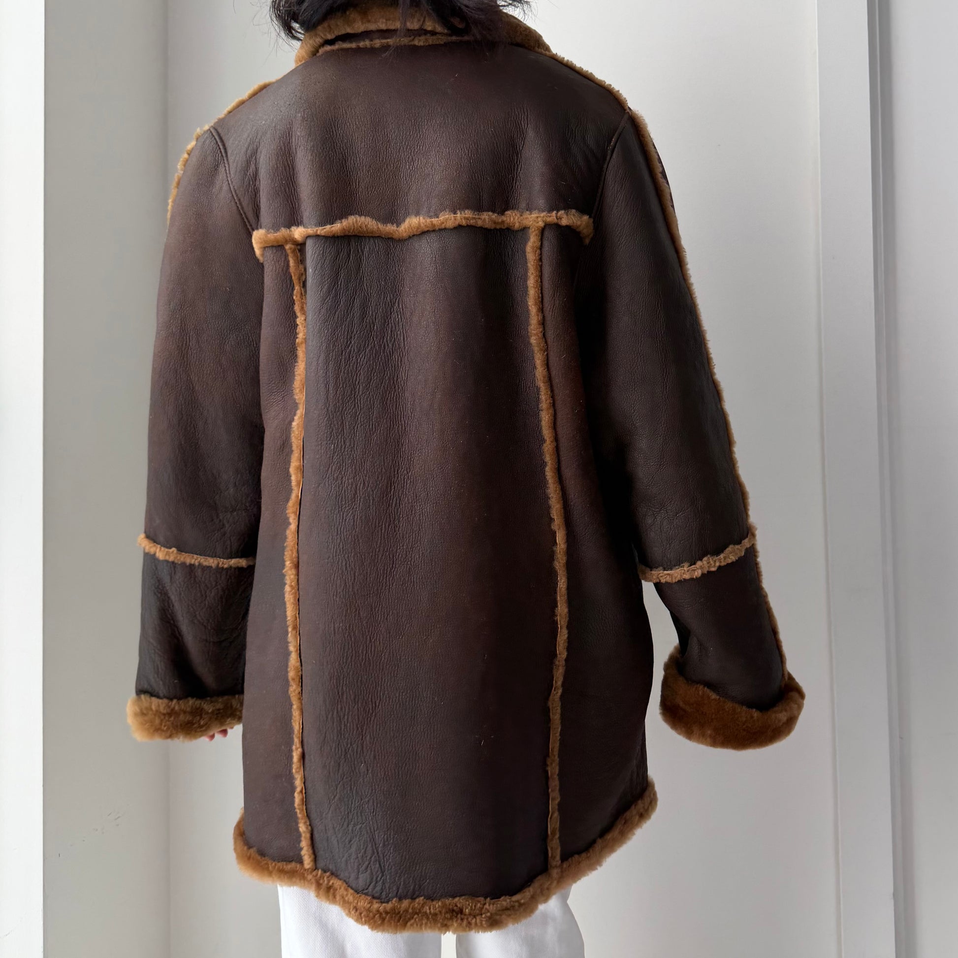Early 2000s Utex Genuine Leather & Shearling Aviator Coat - Medium