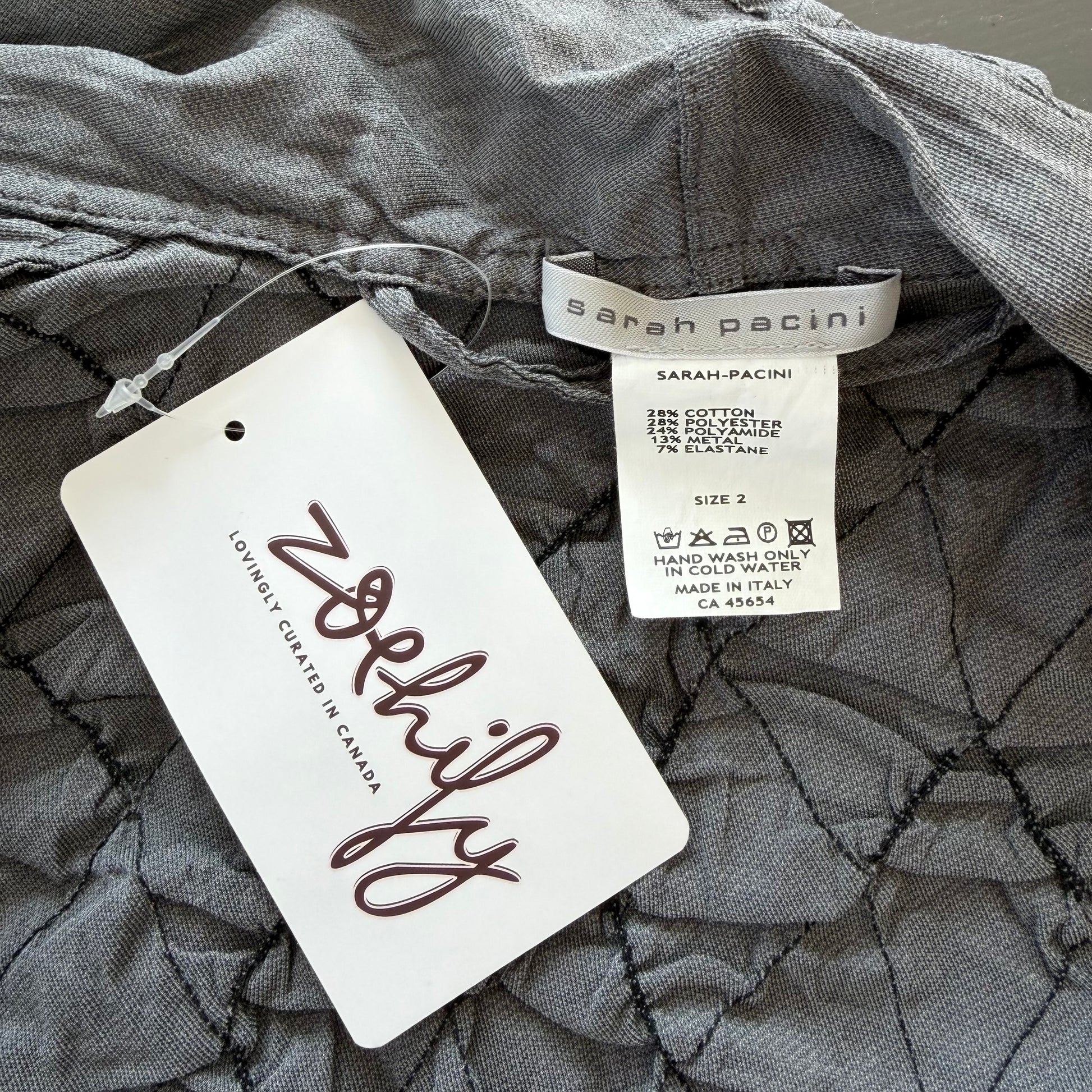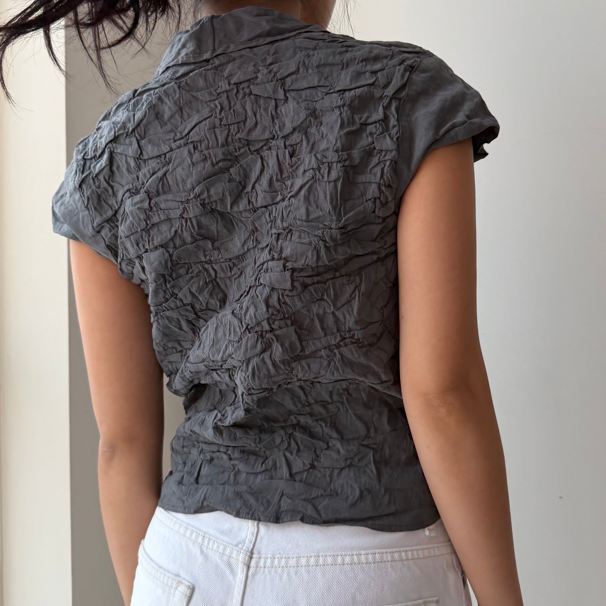 Sarah Pacini Charcoal Crinkled Short Sleeve Blouse - Medium