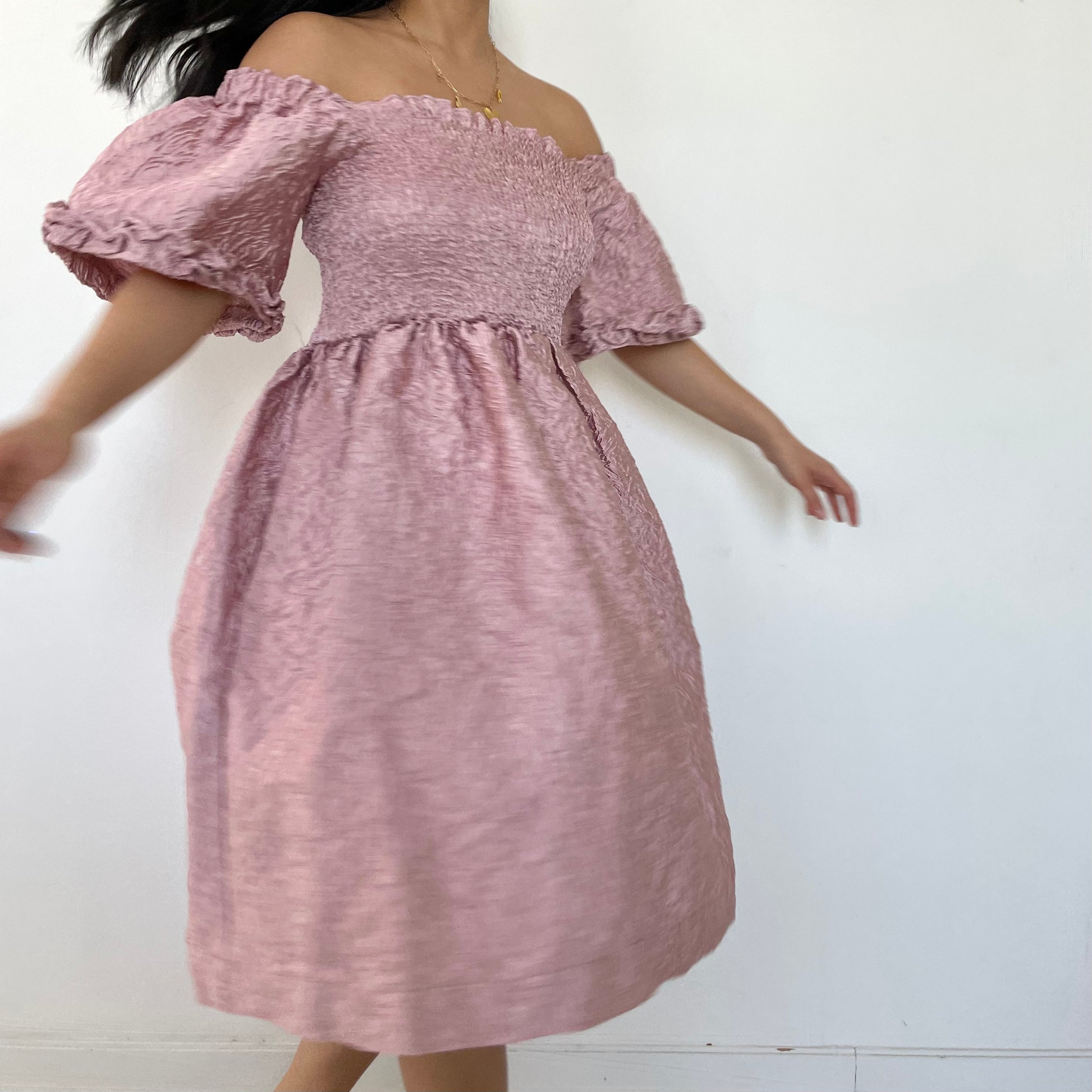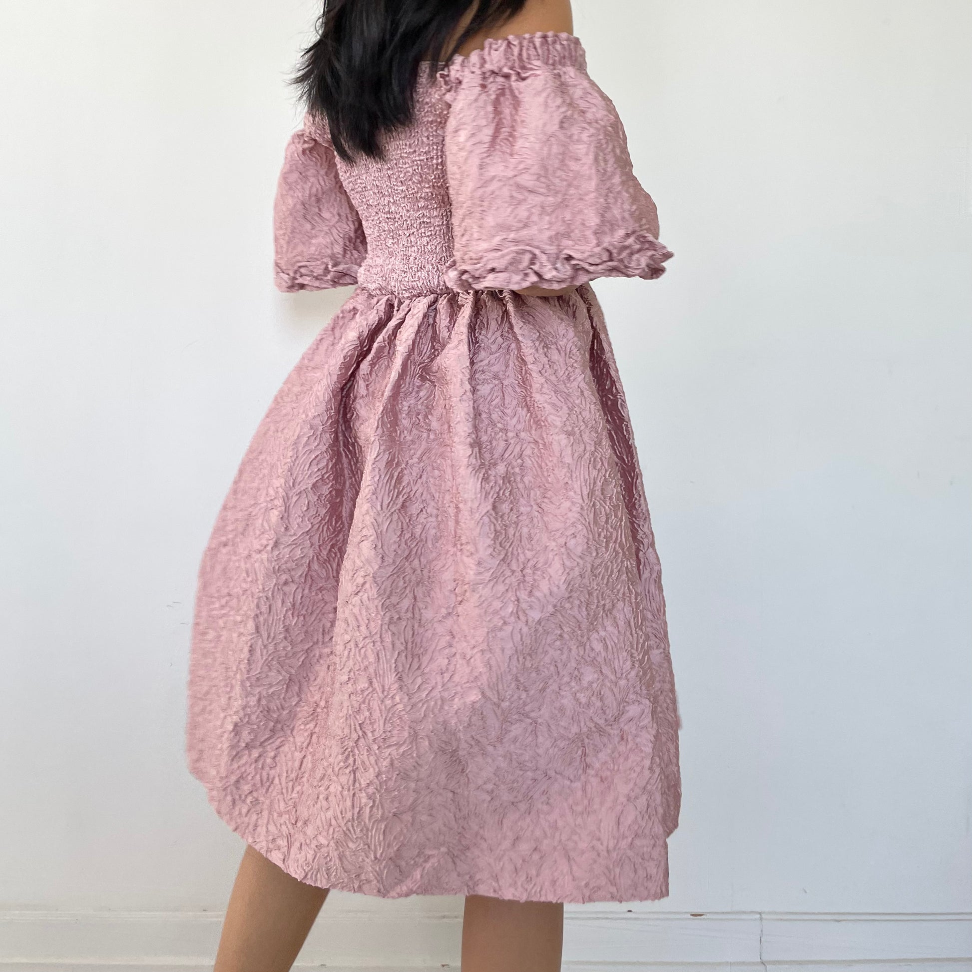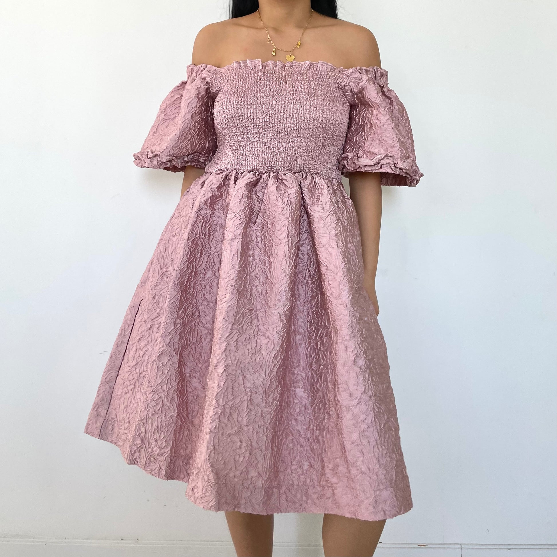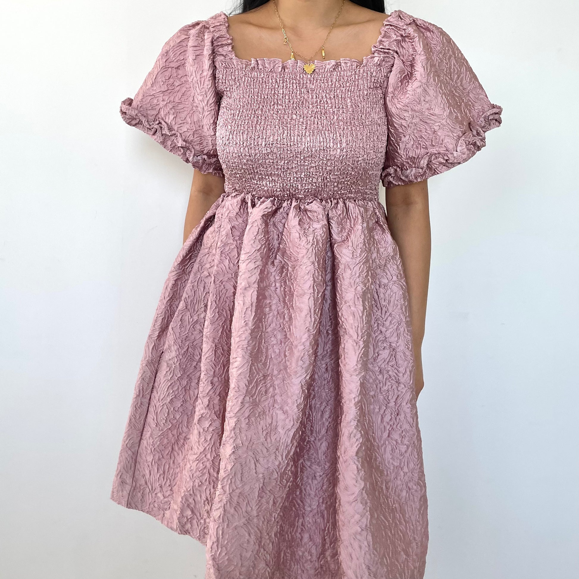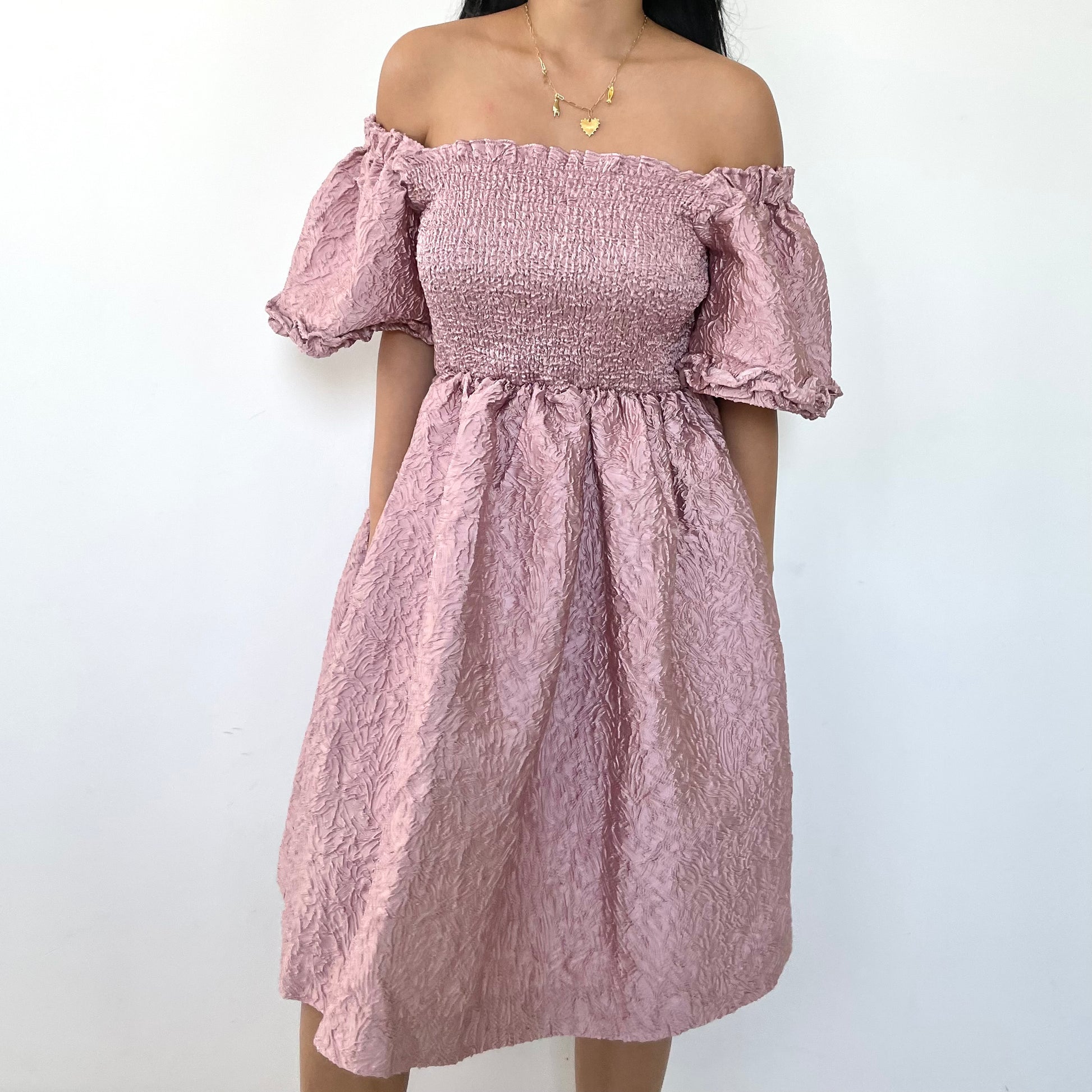 Sister Jane Pink Jacquard Puff Sleeve Mini Dress - X-Small
