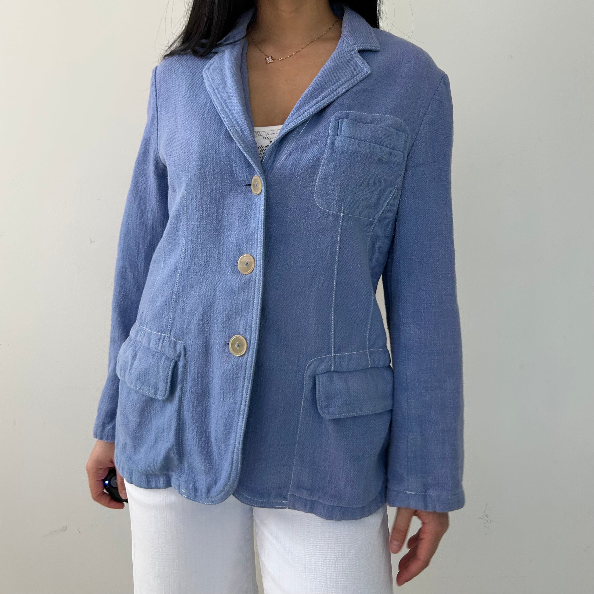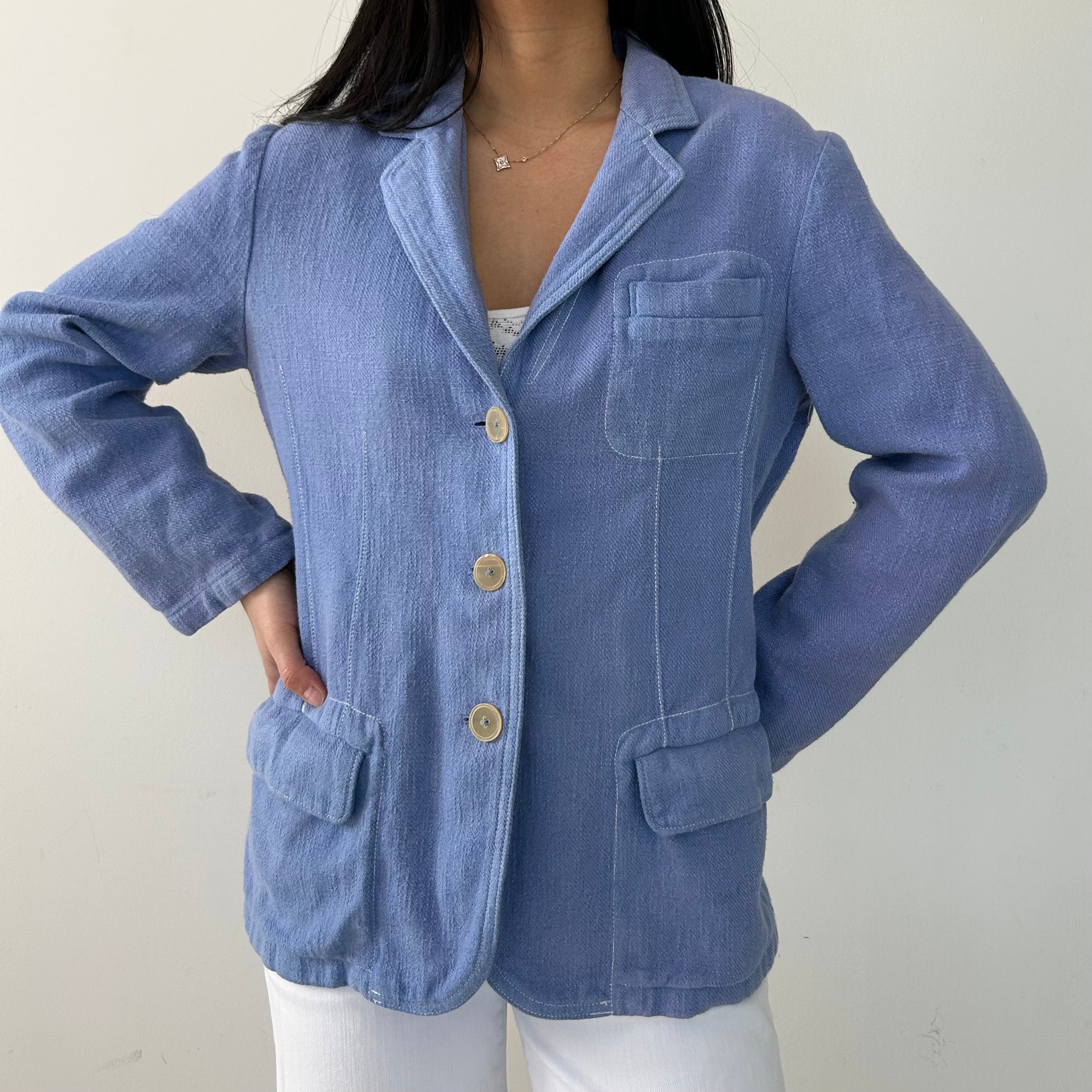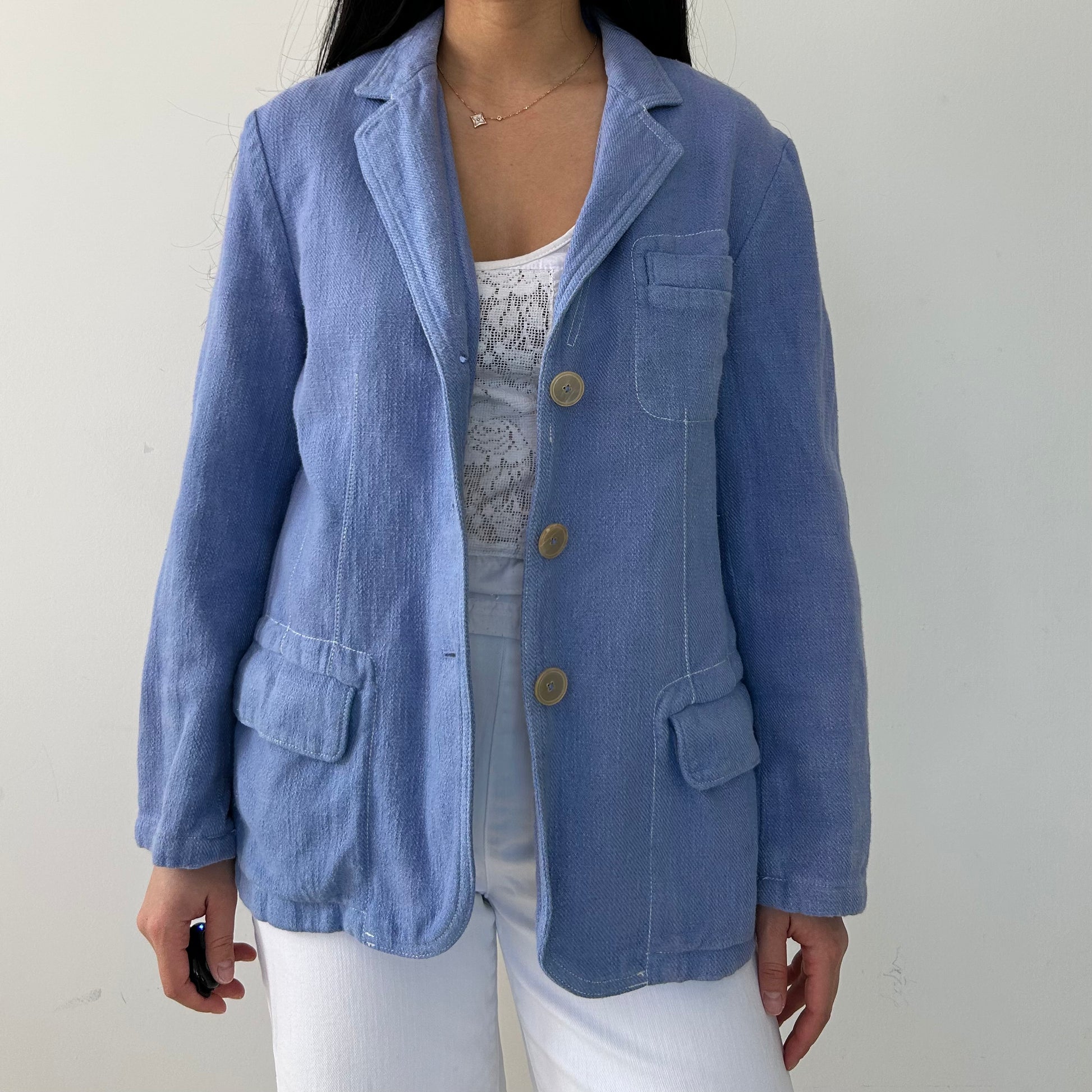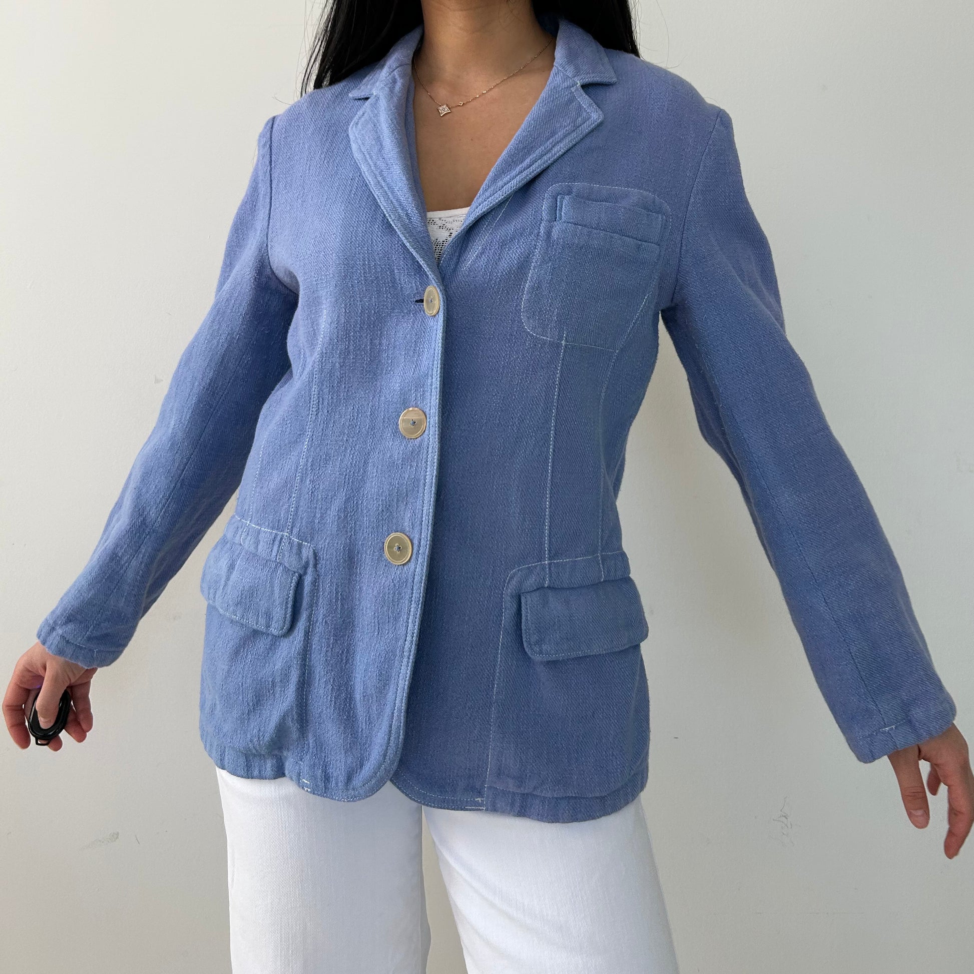 Vintage 1990s Jil Sander Blue Linen Blazer - Medium