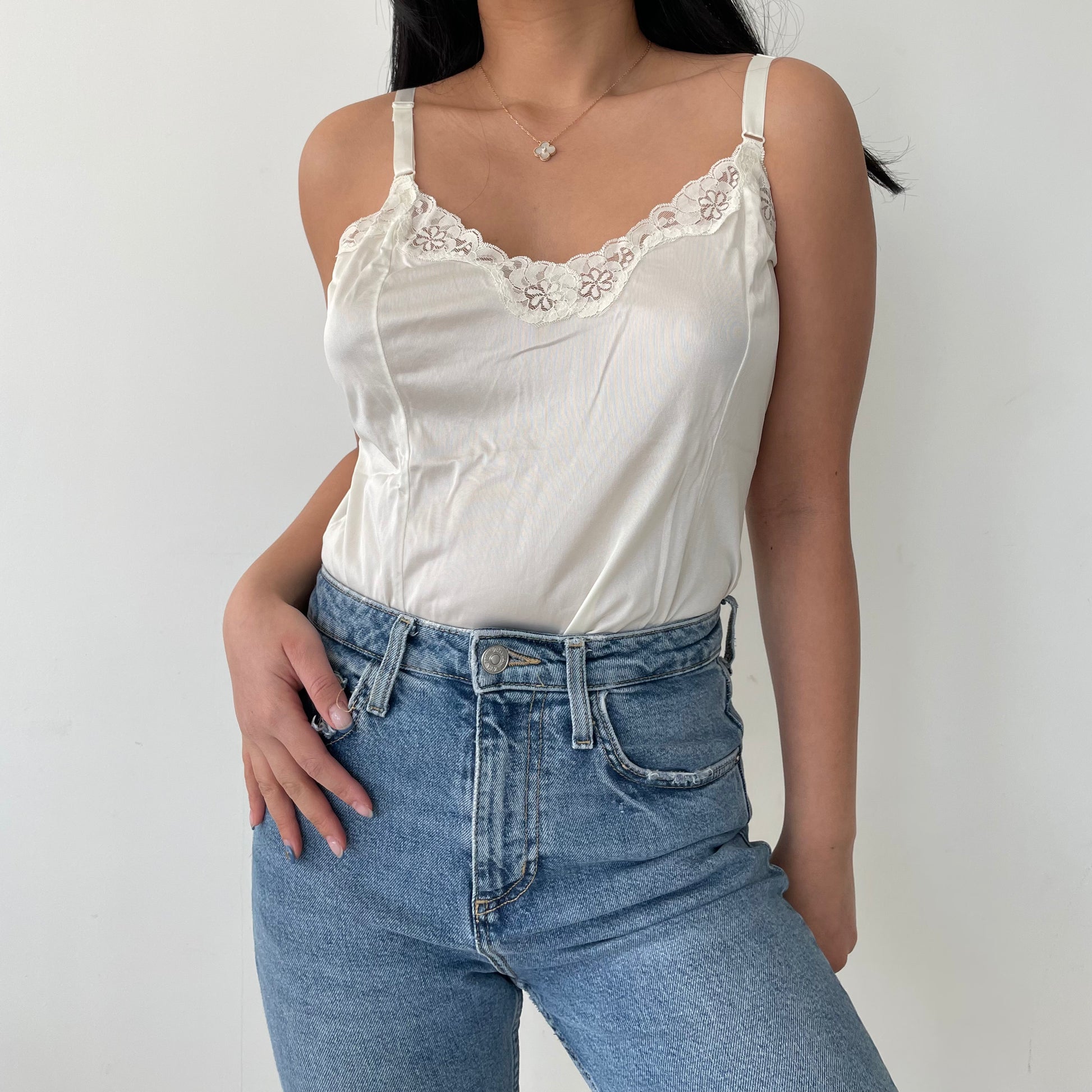 Vintage White Lace Lingerie Cami Top - Medium/Large